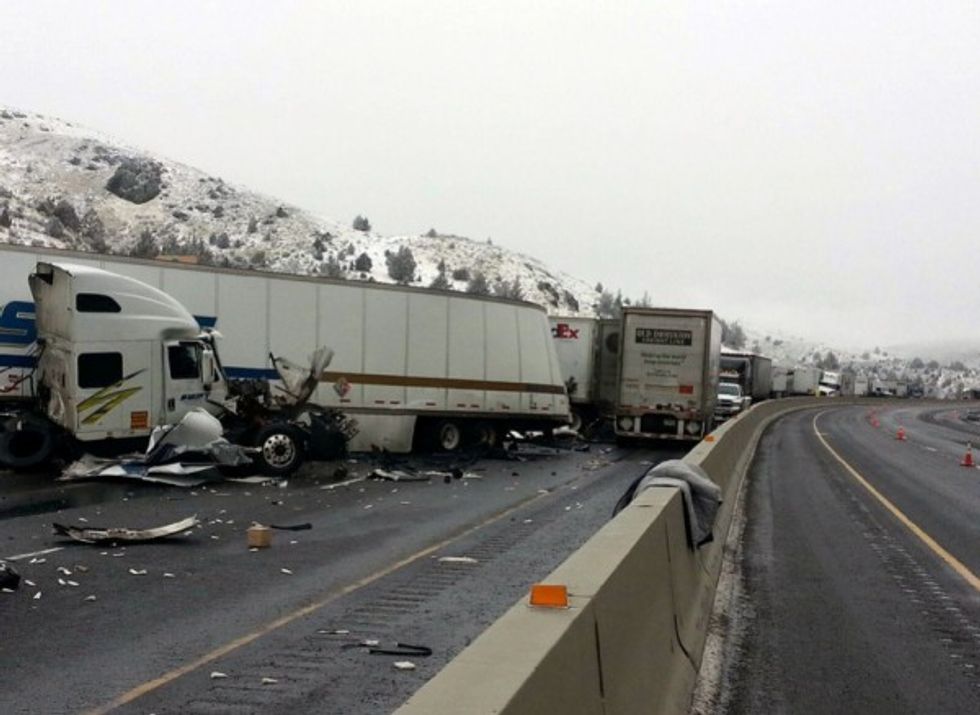 The scene of an accident on I-84 in Oregon Saturday, Jan. 17, 2015. (Image source: AP/Oregon Department of Transportation)