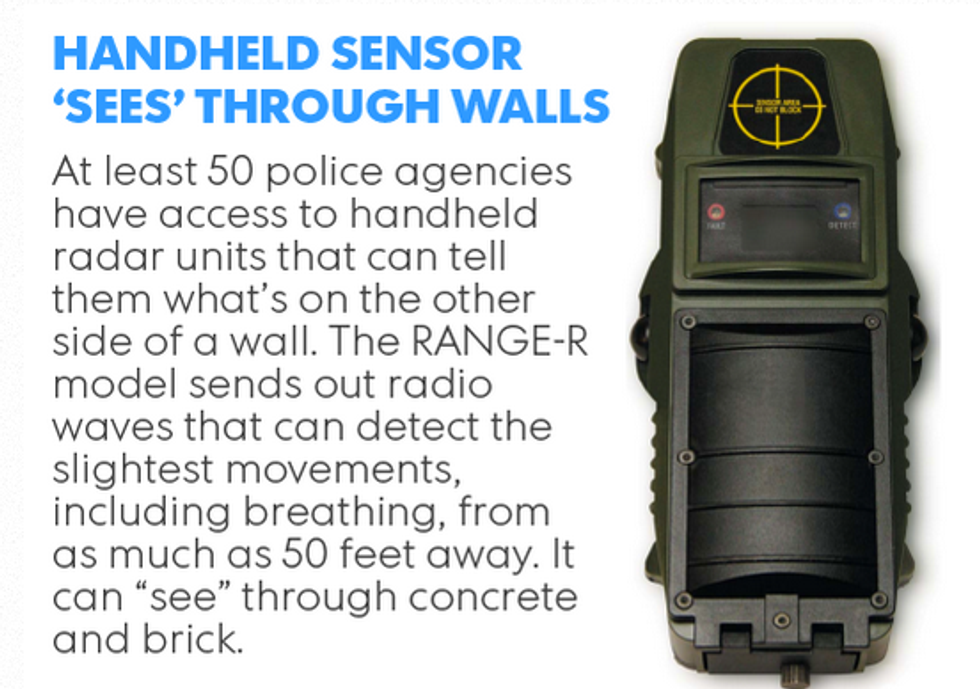 The devices themselves use radio waves, and can be used to determine if there's any movement inside a home. Law enforcement agencies say the devices help ensure the safety of officers, but the paper quoted one privacy advocate as saying the government shouldn't have that much power without a warrant.