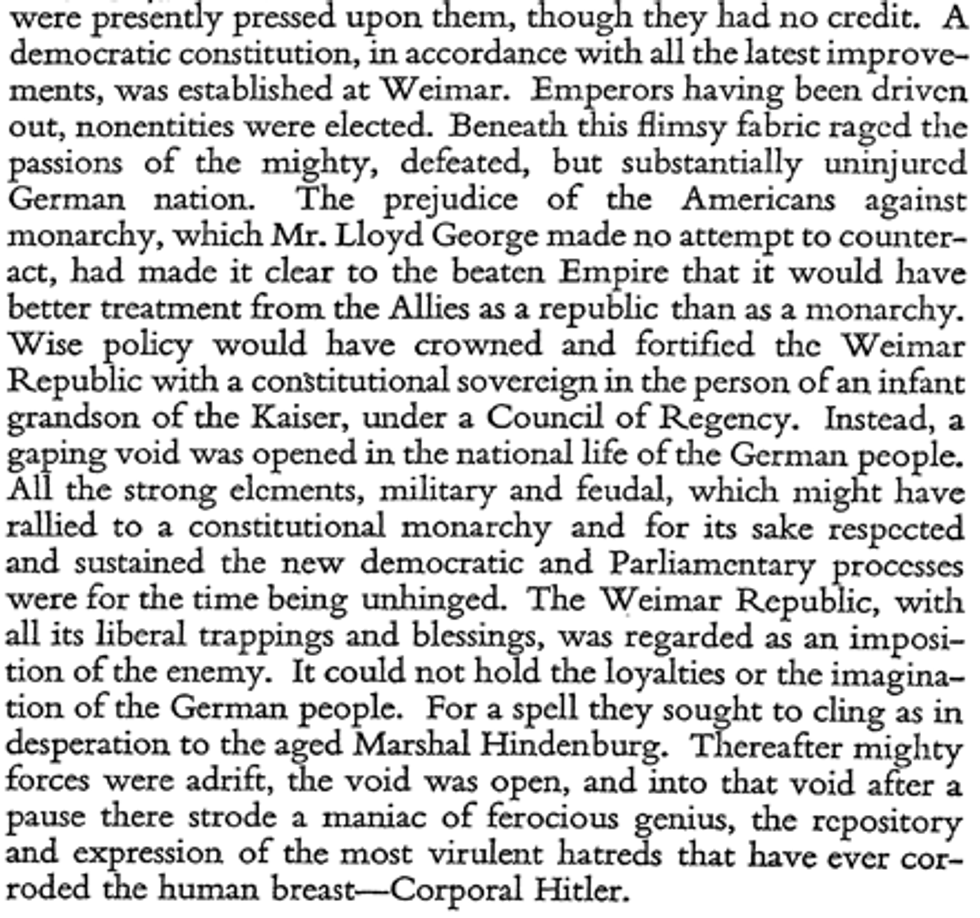 2. "[M]ighty forces were adrift, the void was open, and into that void after a pause there strode a maniac of ferocious genius, the repository and expression of the most virulent hatreds that have ever corroded the human breast."