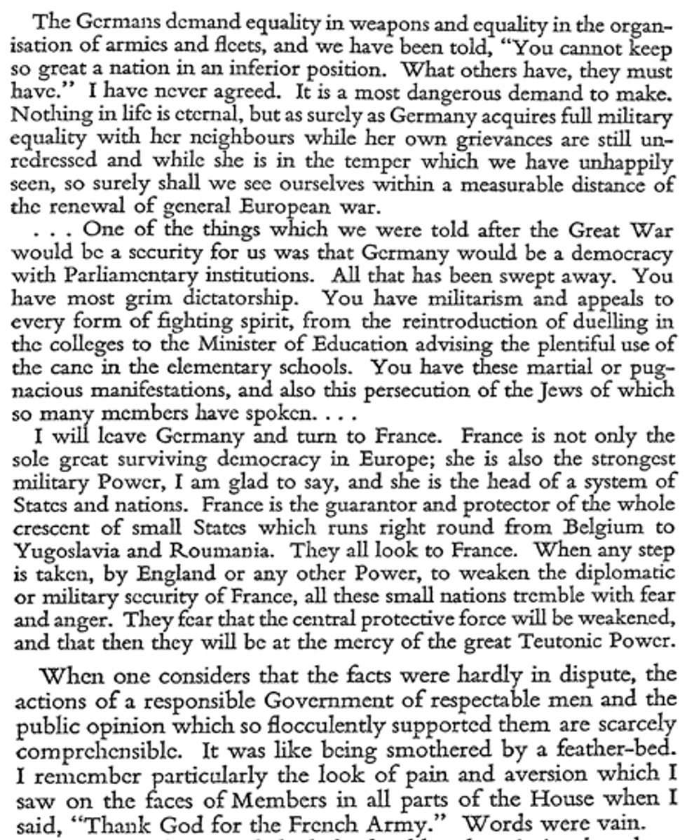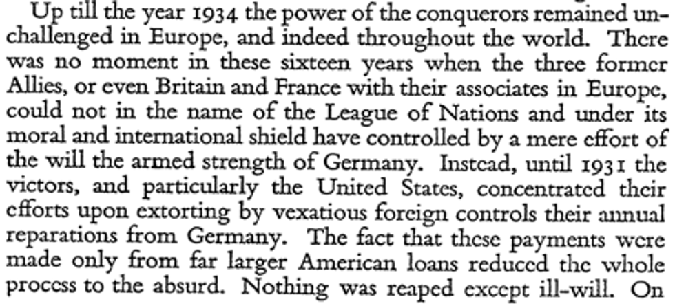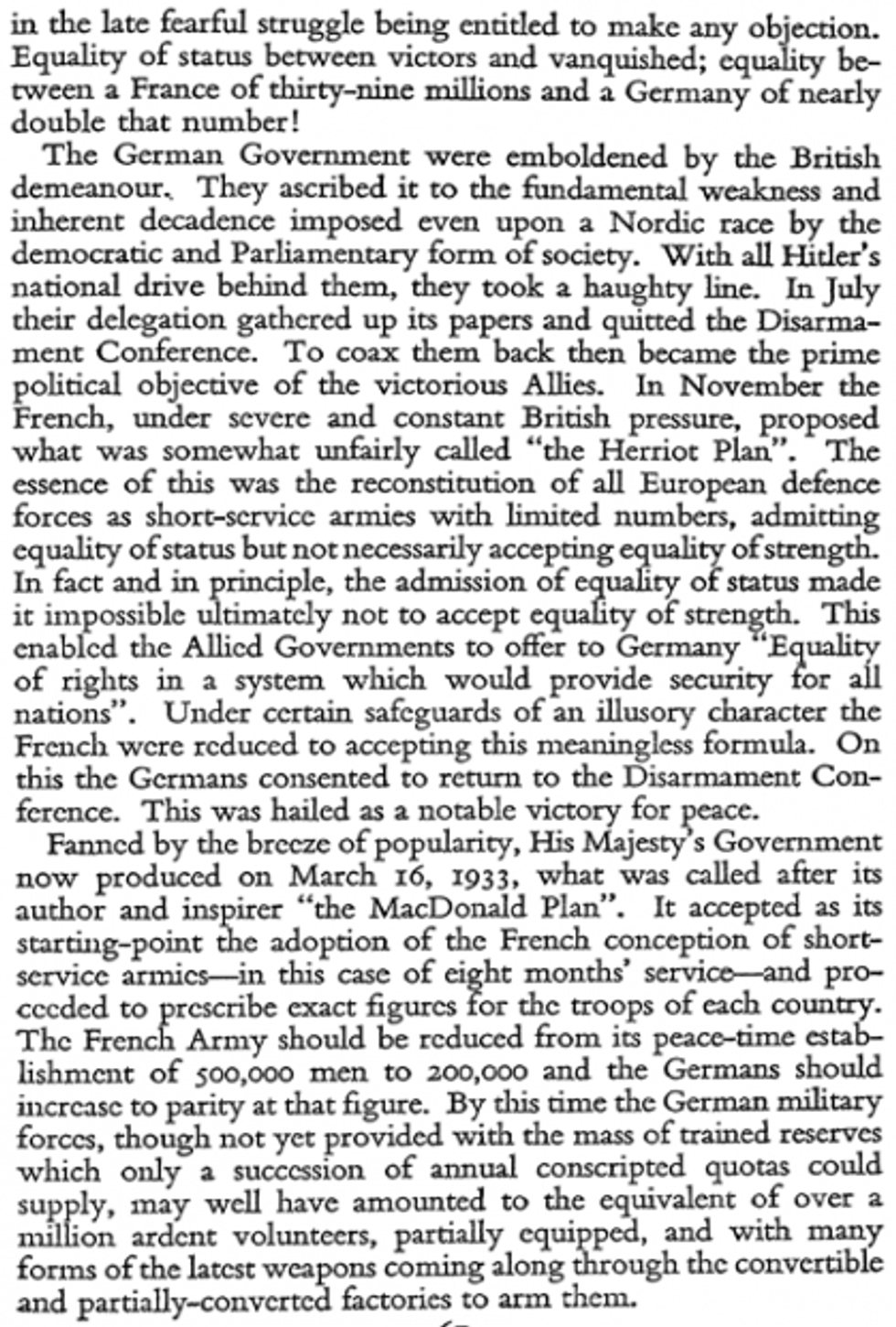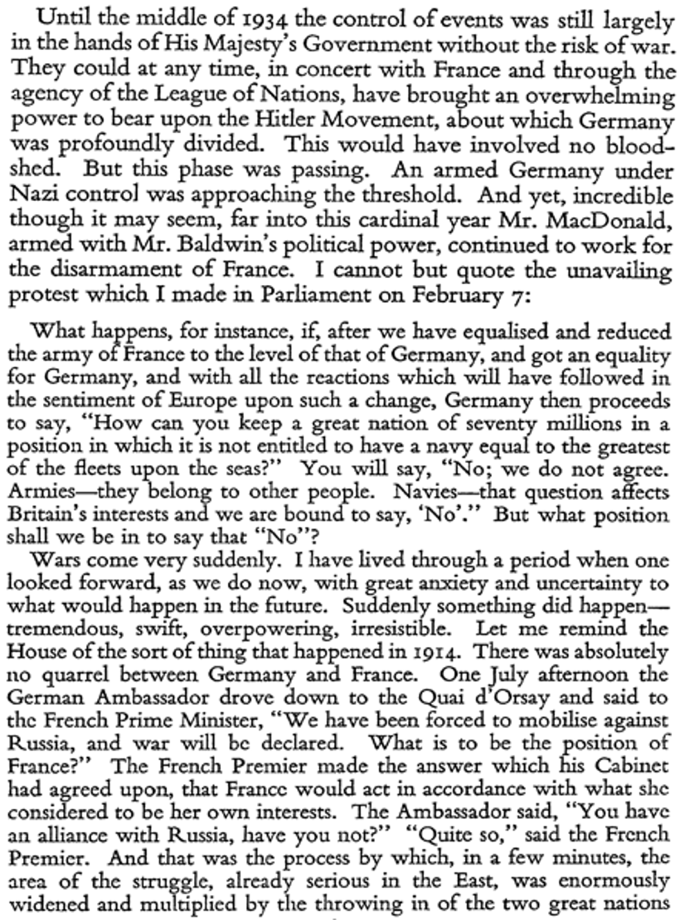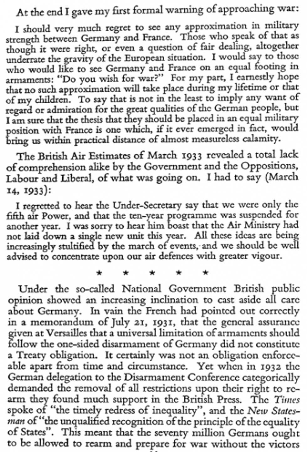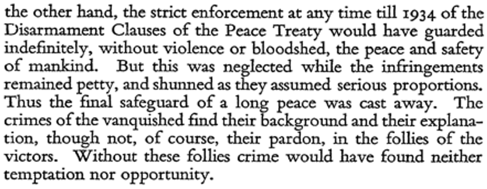 6. "All this time the Allies possessed the strength, and the right, to prevent any visible or tangible German rearmament...Up till 1934 at least German rearmament could have been prevented without the loss of a single life. It was not time that was lacking."