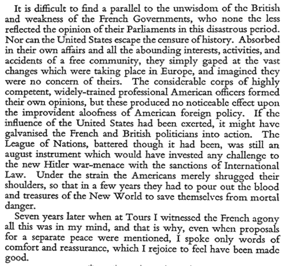 10. "It is difficult to find a parallel to the unwisdom of the British and weakness of the French Governments...Nor can the United States escape the censure of history."