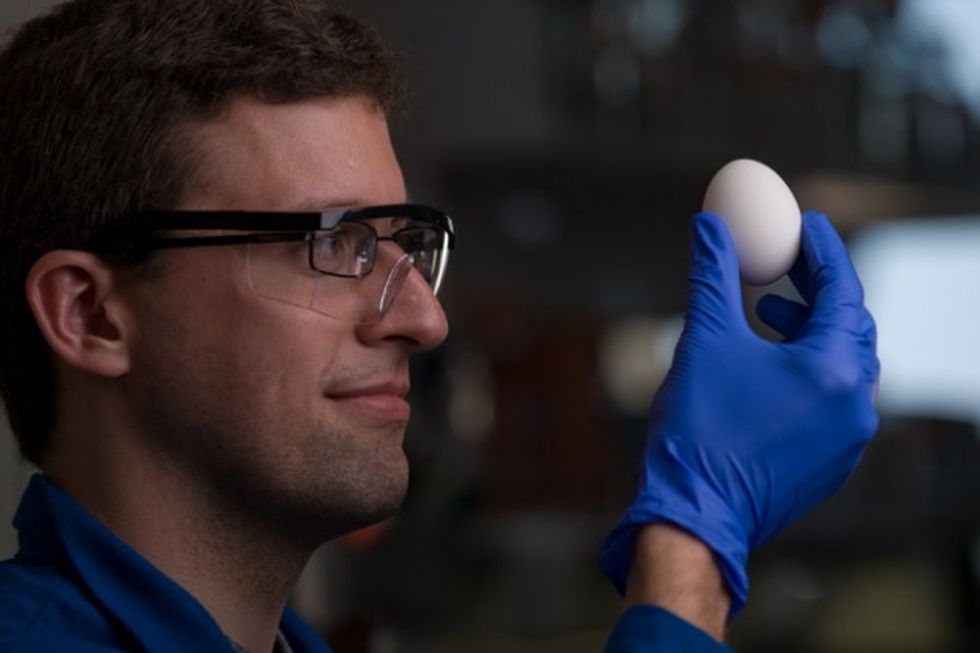 Chemistry major Stephan Kudlacek and professor Greg Weiss have developed a way of un-boiling a hen egg. (Image source: Shutterstock)
