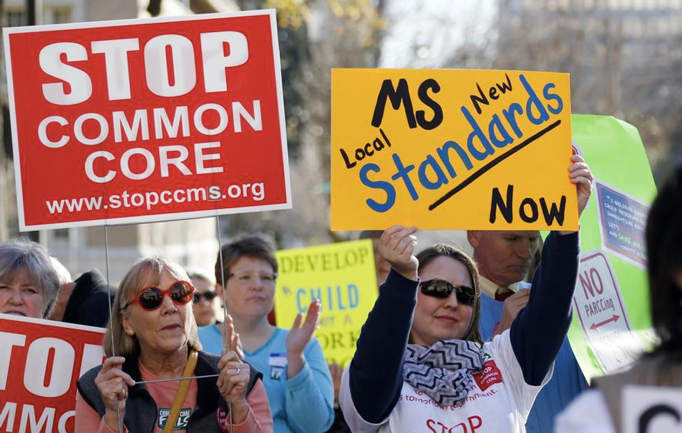 A Mississippi mother says her 8-year-old daughter was told to remove a “Stop Common Core” button from her book bag and barred from handing out similar bookmarks and stickers.