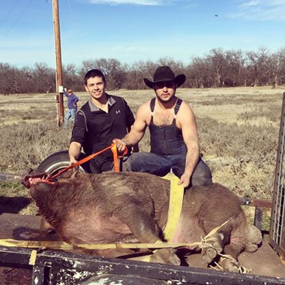 Secondly, it was evident from the start that this hog belonged to somebody at one time or another. As I stated in previous comments, anyone who thinks that either one of us thought this hog was completely feral does not know us. We have both hunted hogs all of our lives, and can clearly differentiate between the two. We had numerous phone calls from buyers, those who wanted to congratulate, those who wanted to hate, and those who were trying to claim the hog as theirs. Of course the 2400$ price tag posted in the articles helped that matter.After a property hearing yesterday, he was awarded to Cuco Pacheco. The 790lb. hog allegedly escaped from his 11-acre pen outside of town, and made his way onto Jimmy Dale's property unnoticed until I found him that Friday.