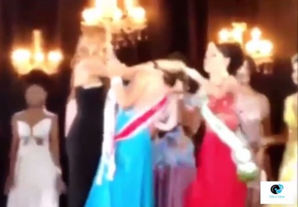 Watch the hair-pulling, tiara-spiking moment below: