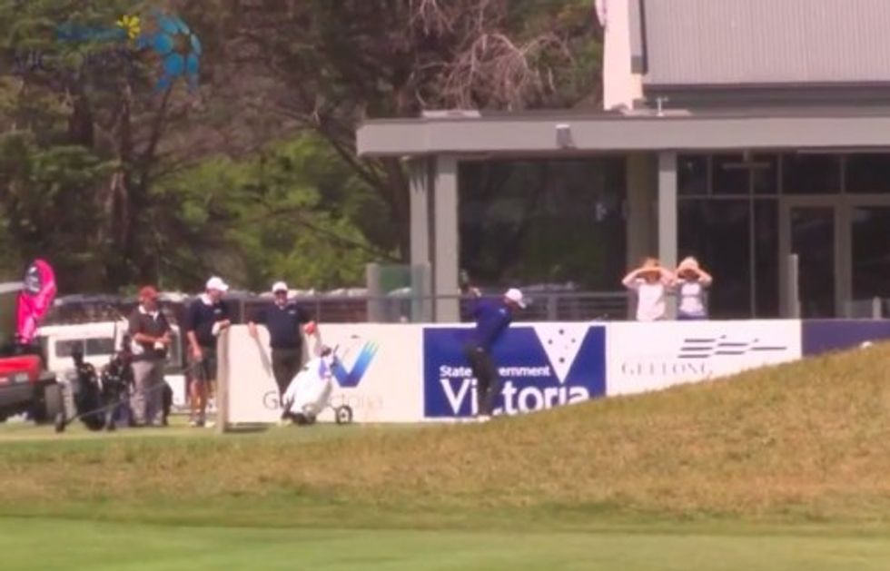 Australian pro golfer Richard Green, teed up for the 15th hole, hoisted the driver behind his head and let it fly against the ball.