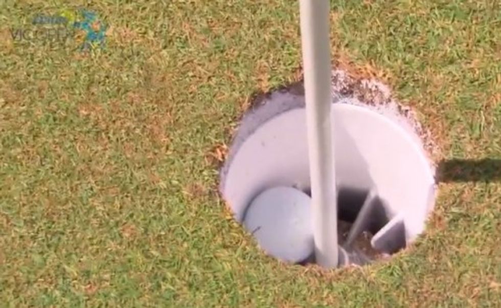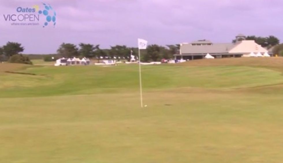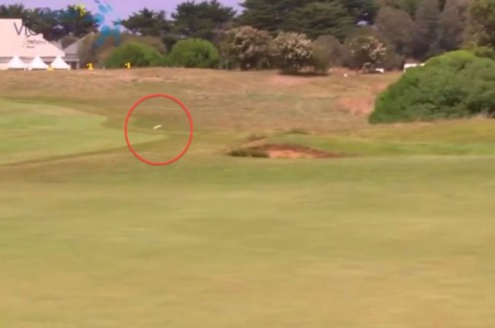 When it bounced toward — and, in fact, landed in — the bunker far from the hole, those nearby at the Thirteenth Beach Golf Links in Australia couldn't have guessed what was about to happen next.
