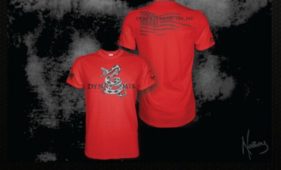 But there's a little more to it, and it involves former SEAL Dom Raso. According to a tip we got, the shirt is actually a take on the logo for Raso's training company, Dynamis Alliance. The red "A" and the serpent even appear on a new shirt that Raso's group sells: