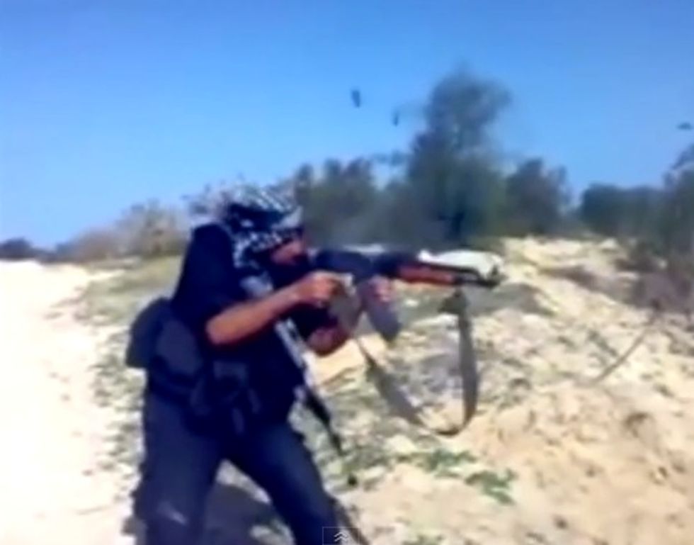 One of the scenes posted on YouTube and the Middle East website Al Arabiya shows a group of fighters sitting together, with one chanting into a microphone, while another accidentally detonates an explosive which fills the frame with smoke and fire.