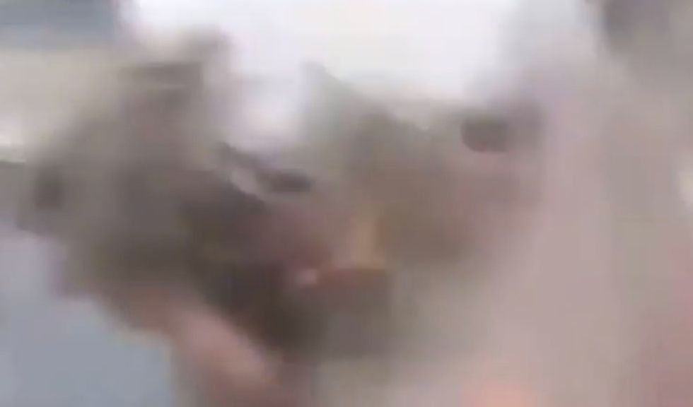 The fighter's rocket fell short, right next to his truck. (Screenshot: YouTube)