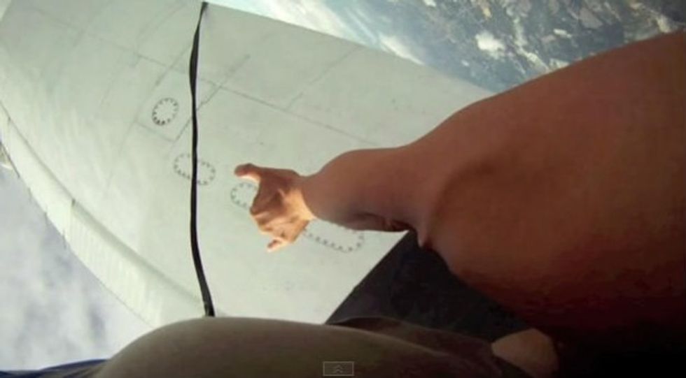 "Yes, that's my drogue and bridle over the wing. Our bodies just missing the prop, wing and tail," the text in the video reads. Meanwhile, Pullman's passenger, who the video does not identify, is screaming and hollering, appearing to be having the time of her life.