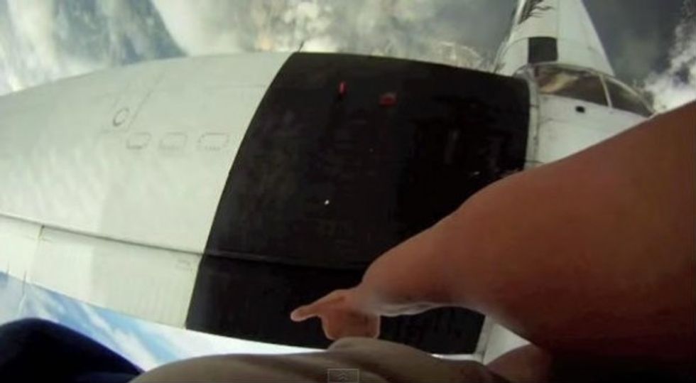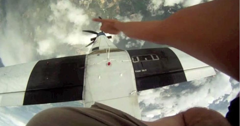 Around the 40-second mark, you can see where the instructor's equipment comes very close to the plane from which they had just jumped.