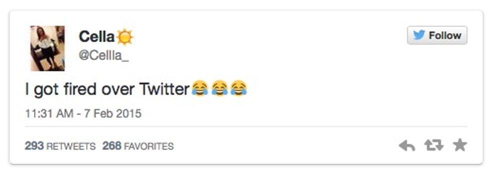 Cella later posted, "I got fired over Twitter."