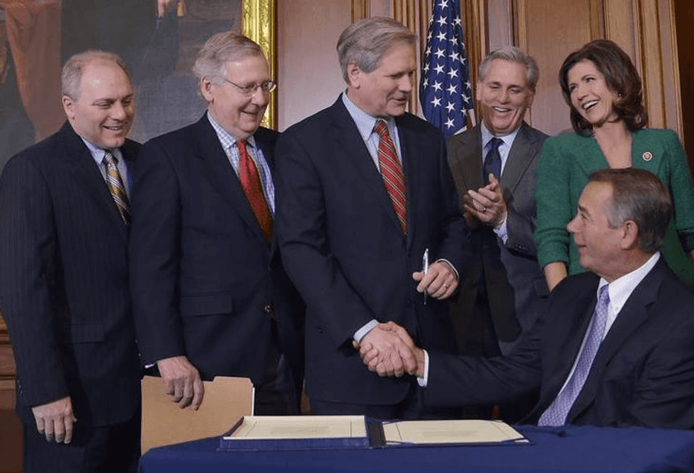 "To the president, I would just say this: Do the right thing," House Speaker John Boehner (R-Ohio) said just before signing it and send it to the White House. "Sign this bill and help us create more jobs in America and create a healthier economy."