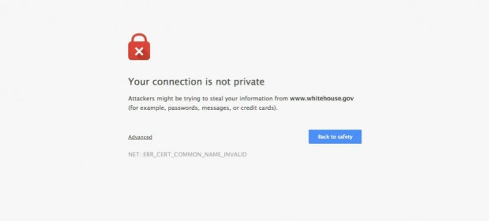 Instead, users currently see the warning, "your connection is not private" and the caution that "attackers might be trying to steal your information from www.whitehouse.gov (for example, passwords, messages, or credit cards)."