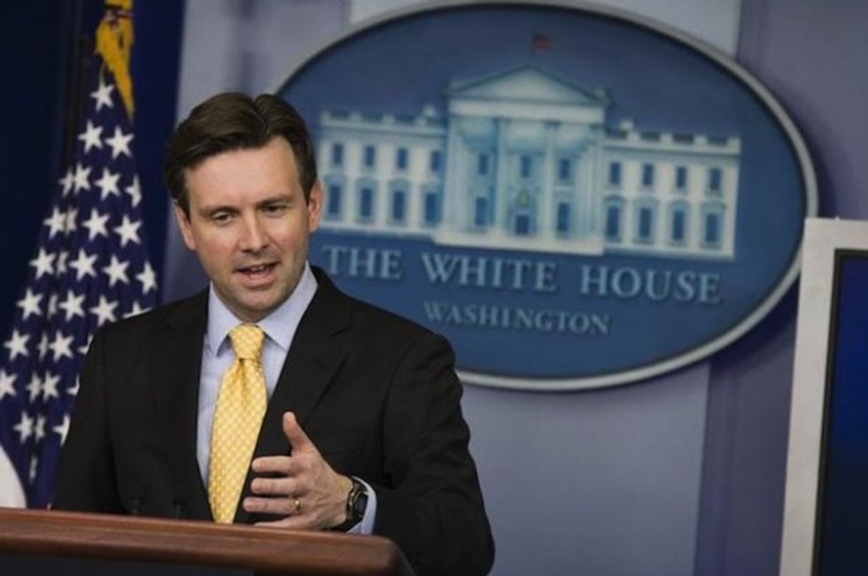 White House press secretary Josh Earnest during the daily press briefing, Tuesday, Feb. 10, 2015, at the White House in Washington. (AP Photo/Evan Vucci)