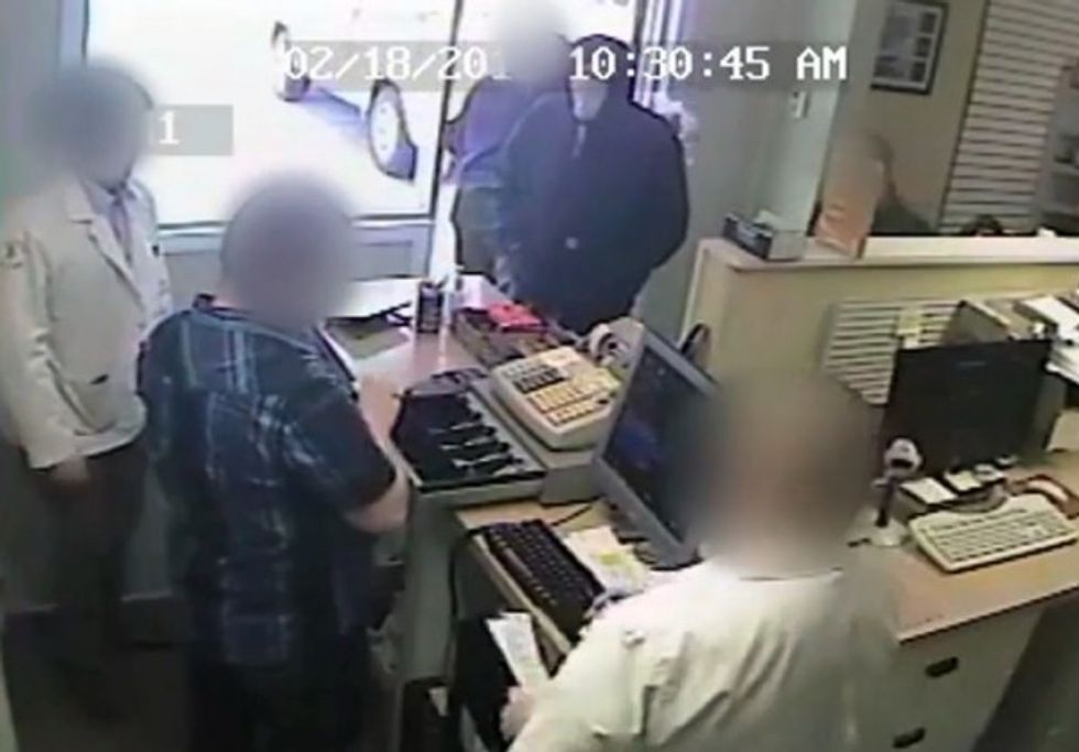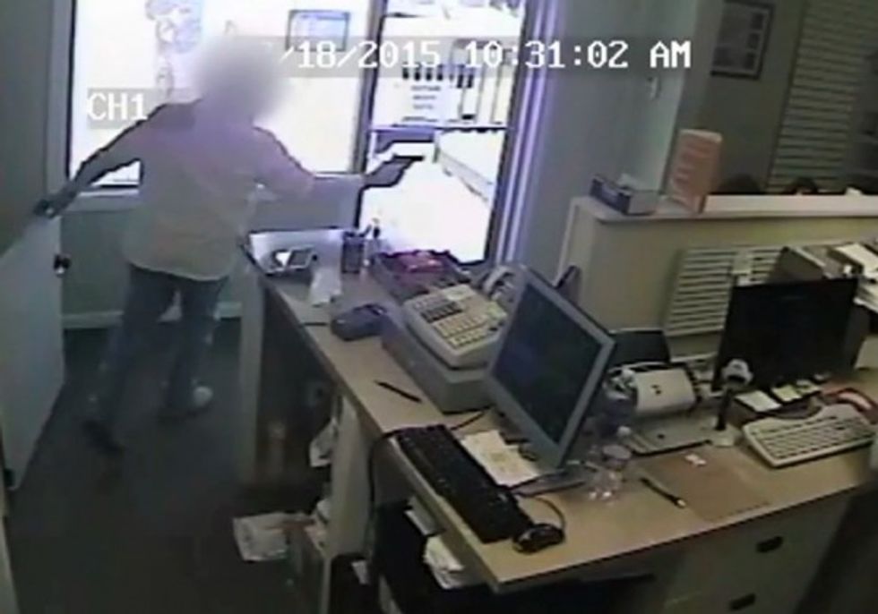 The pharmacy didn't close after the incident, the Gazette noted, adding that employees swept up glass from a broken window and then began attending to customers again.