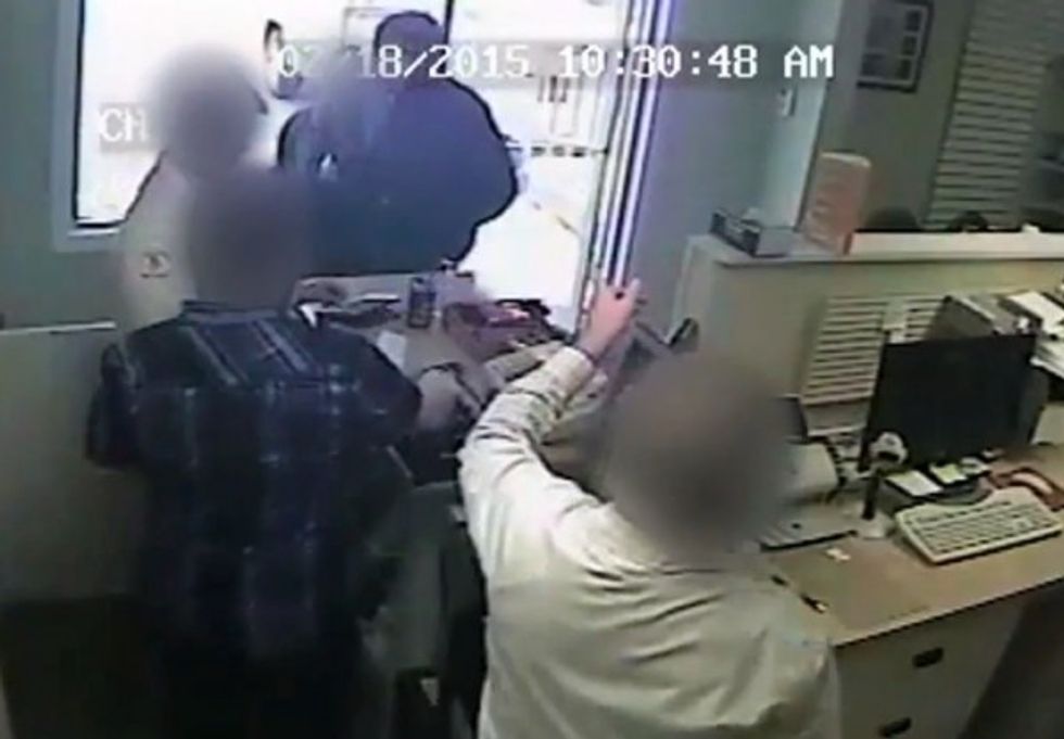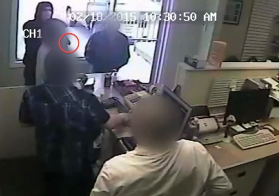 It was clearly no joke to the guy behind the makeshift mask, who then pulled out a gun.