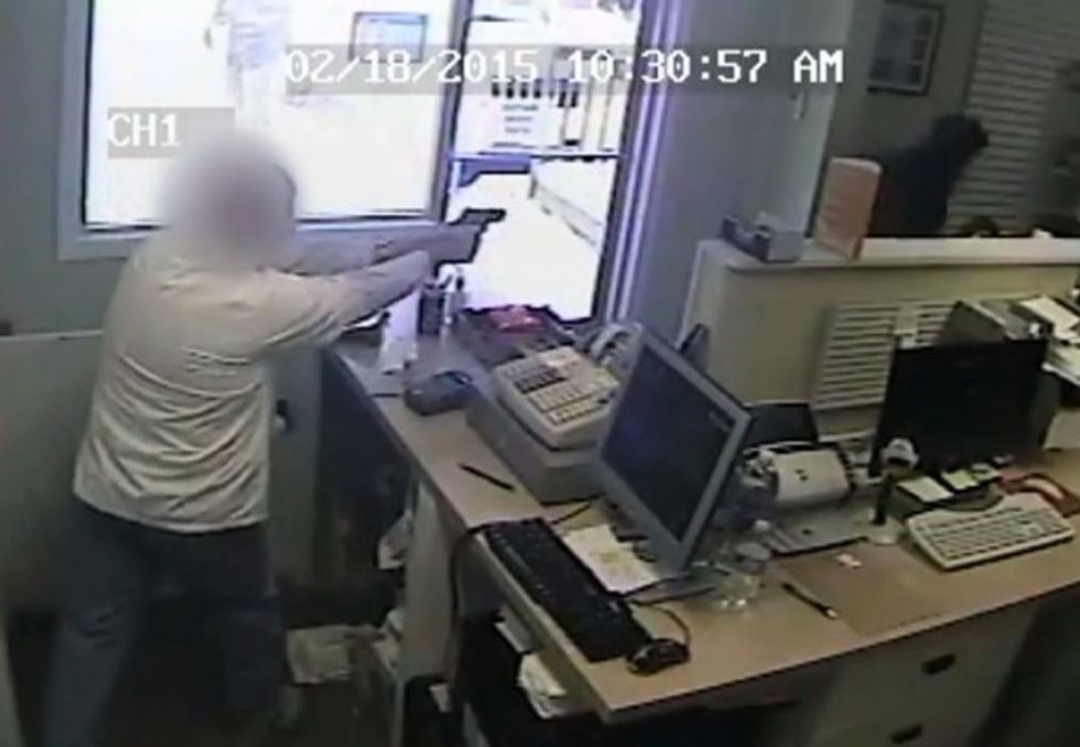 The second shot hit the man's gun, which jammed it. The third shot struck his midsection, the Gazette reported.
