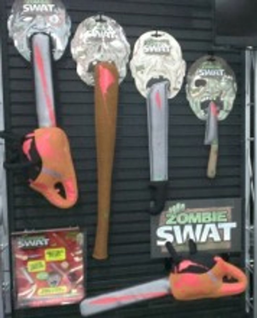 “The Walking Dead" (and shows of similar ilk) was represented with a myriad of toys designed to help the little tykes deal with zombie infestations. Favorite among them: plush pillow toys of axes, swords -- even a chainsaw -- all painted with buckets of blood.