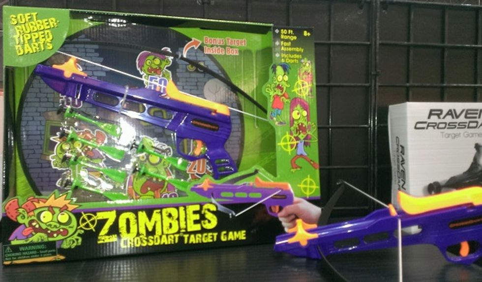 The Toy Fair's weapon of choice dovetailed off the popularity of "The Hunger Games." The bow and arrow -- as well as two spinoffs, the crossbow and slingshot -- populated many booths. And most photos and mannequins demonstrating these weapons featured preteen girls.
