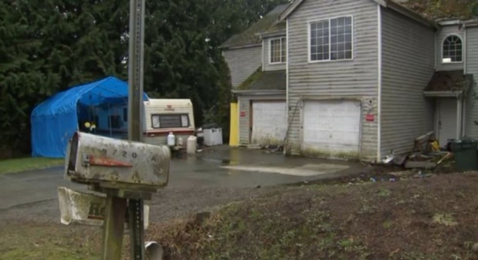 The home from which police say they rescued three young children who were being kept in freezing, squalid conditions. (Image via KCPQ-TV)