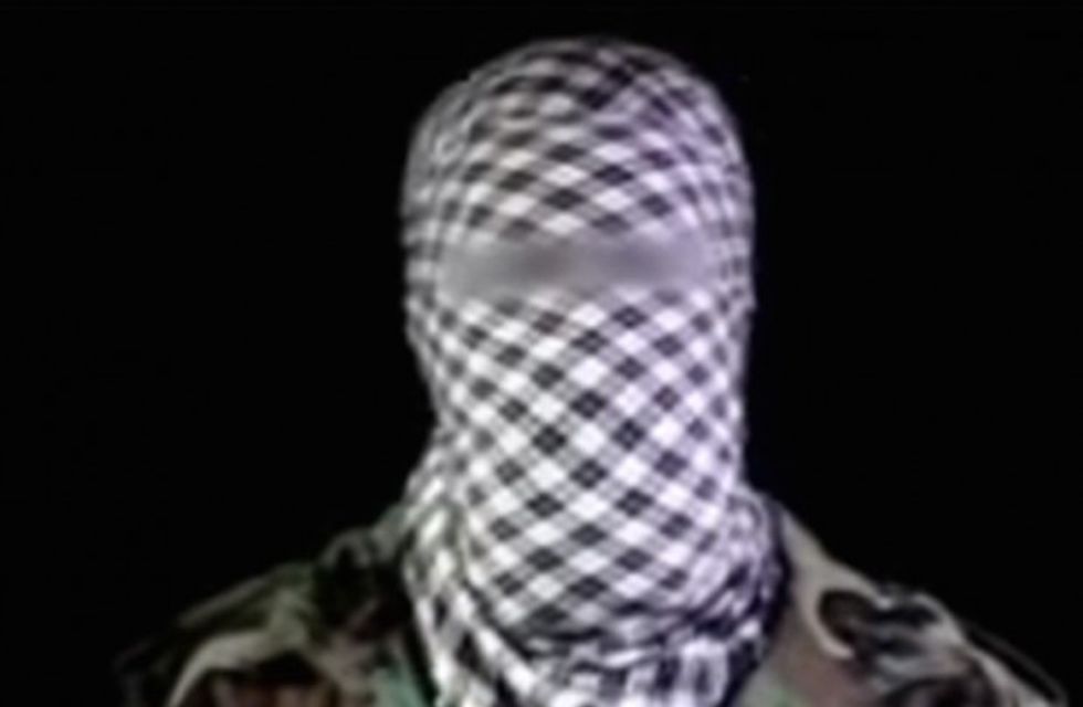 The masked man in al-Shabab's video calling for attacks on malls. (Image via CNN)