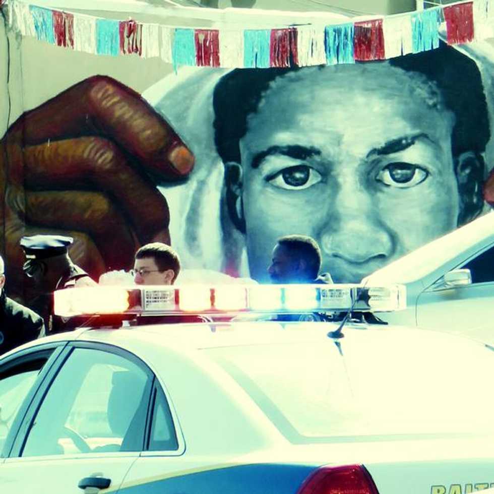 — Baltimore Police (@BaltimorePolice) February 22, 2015The location: in the shadow of a mural of Trayvon Martin, the black teenager who was shot and killed by George Zimmerman in Florida three years ago this month.