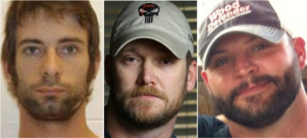 Eddie Routh (left) was found guilty on Tuesday of murdering Chris Kyle (center) and Chad Littlefield (right).