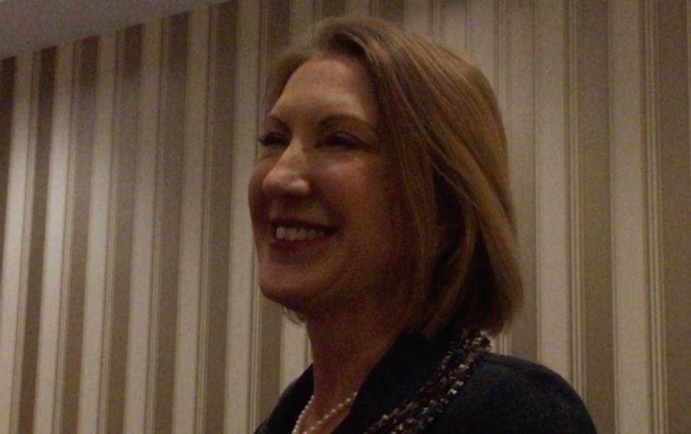 Former Hewlett-Packard CEO Carly Fiorina stood on a chair and spoke about the vital need to combine activism with great ideas. She also encouraged more "citizens to run for office."