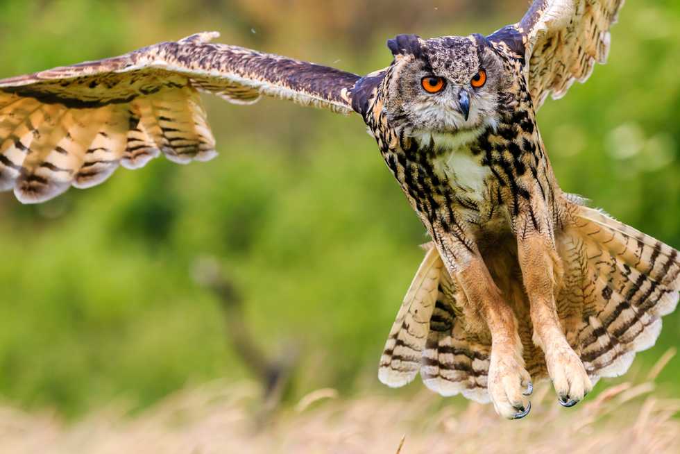 According to the National Aviary, a nonprofit dedicated to birds, the Eurasian eagle owl is the largest of owl species with an up to six-and-a-half-foot wingspan.