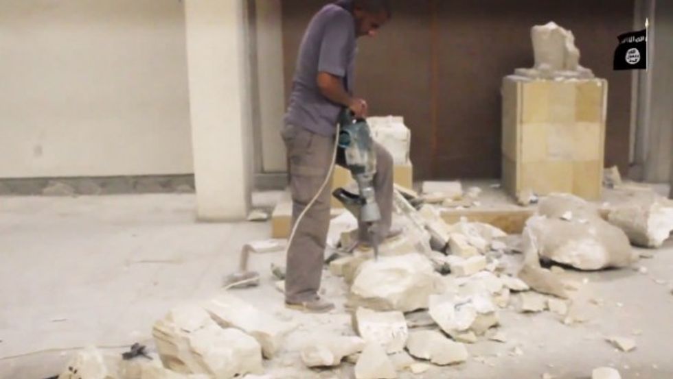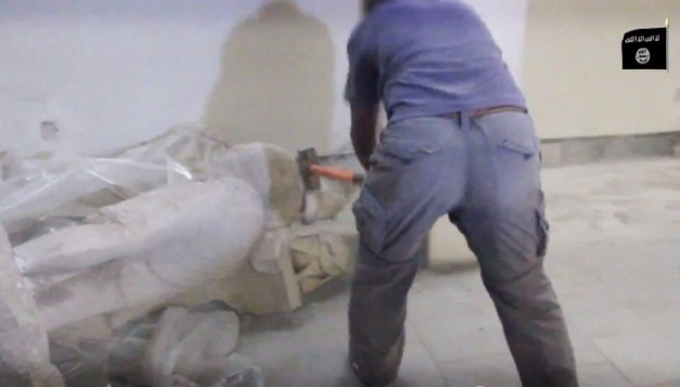 The five-minute video showed the men going at statue after statue, knocking them to the ground and destroying them using sledgehammers and jackhammers.