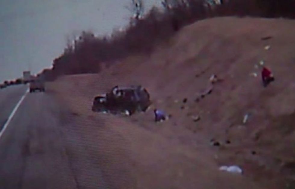An SUV was caught on dashcam video drifting from one side of a freeway to the other, then flipping five times along an embankment, ejecting three occupants and landing on one passenger — a 5-year-old boy.