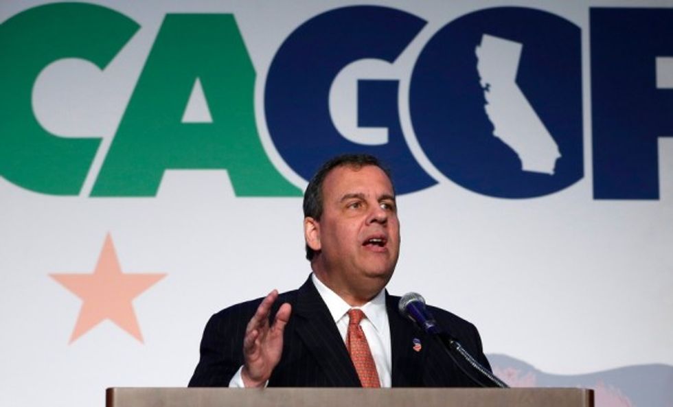 New Jersey Gov. Chris Christie addresses delegates at the California Republican Party Spring 2015 Organizing Convention in Sacramento, Calif., Saturday, Feb. 28, 2015.(Image source: AP/Rich Pedroncelli)