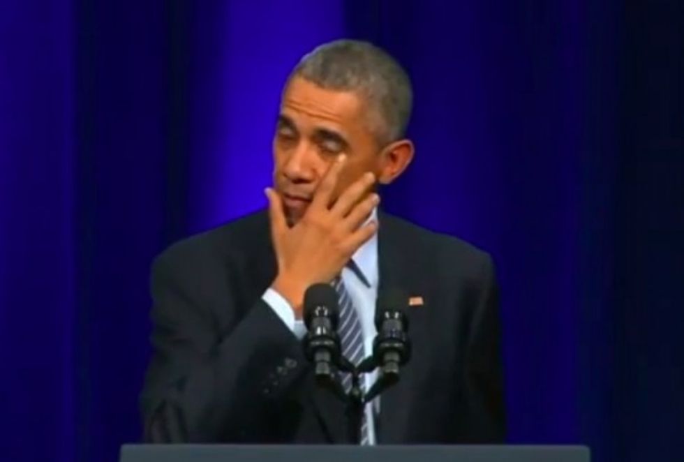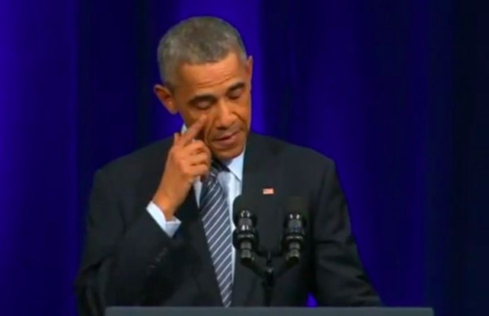 And it looked like Obama dabbed an eye once more as he left the podium: