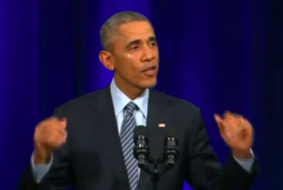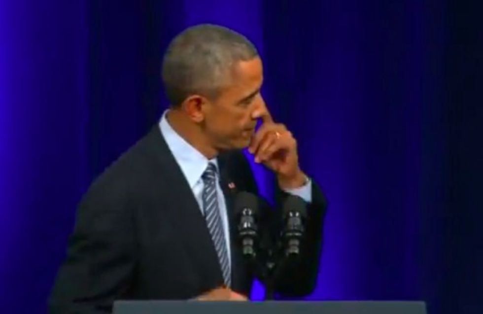 As President Barack Obama noted how "rare" it is to have "good men in positions of power and authority, who are willing to fight for what's right" in a ceremony for outgoing Attorney General Eric Holder on Friday, Obama appeared to get emotional.