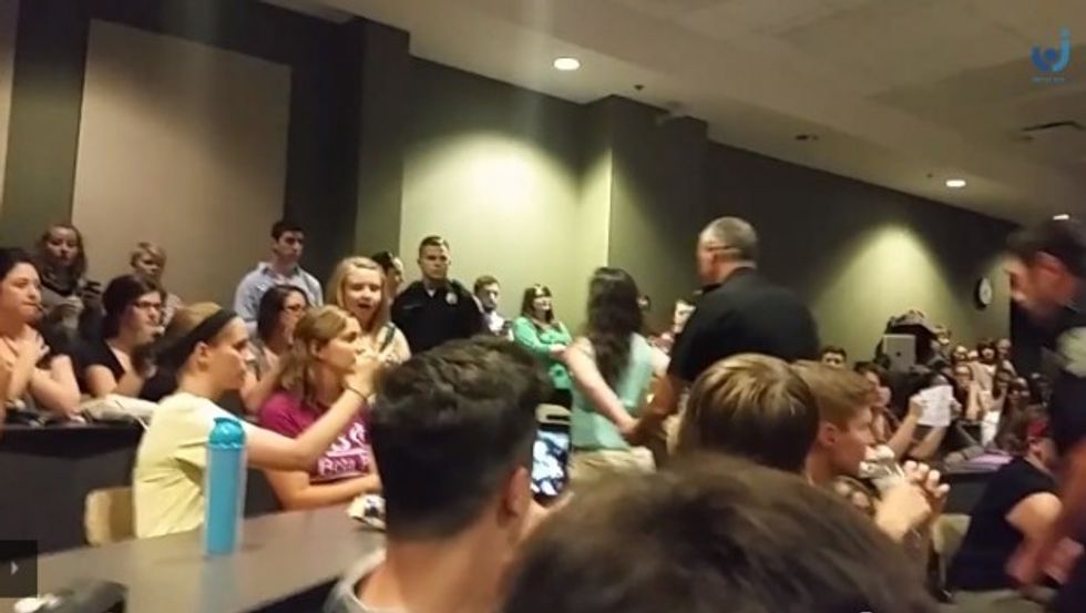 Other student senators resigned following the incident in protest that students had tried to shut down the dialogue by calling the campus police.
