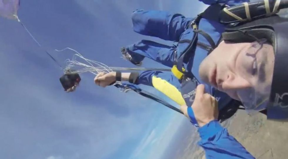 "Possibly the scariest moment of my life," reads the video description on YouTube. "At around 9000ft I have a seizure while attempting a left hand turn. I then spend the next 30 seconds in free fall unconscious. Thankfully my jumpmaster manages to pull my ripcord at around 4000ft. I become conscious at 3000 ft and land safely back to the ground."