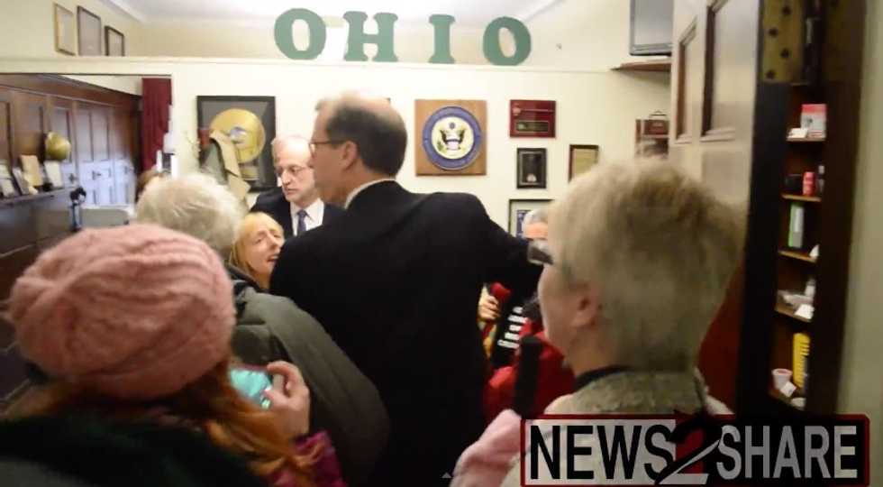 As Cohen entered Rep. Steve Stivers' (R-Ohio) office, the activists followed, storming inside.