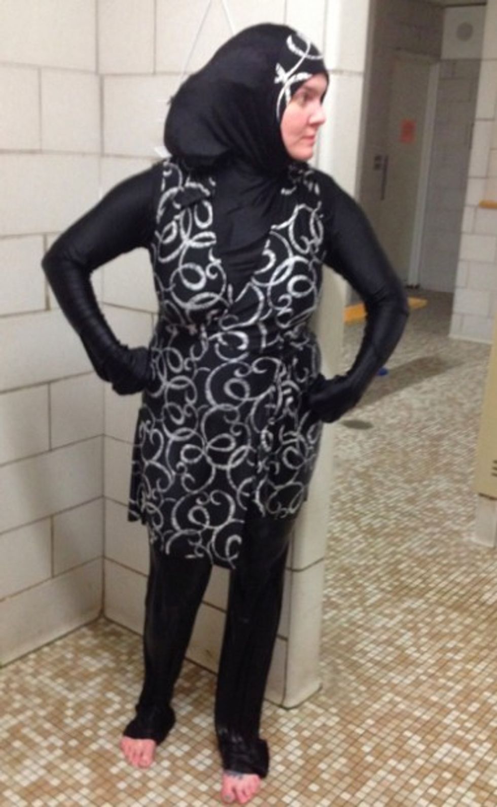 Eagan is so devoted to her cause that she recently wore a "burkini," which she described as a "swimsuit that covers you from head to toe," while swimming with her family to ensure that she makes good on her quest to remain covered.