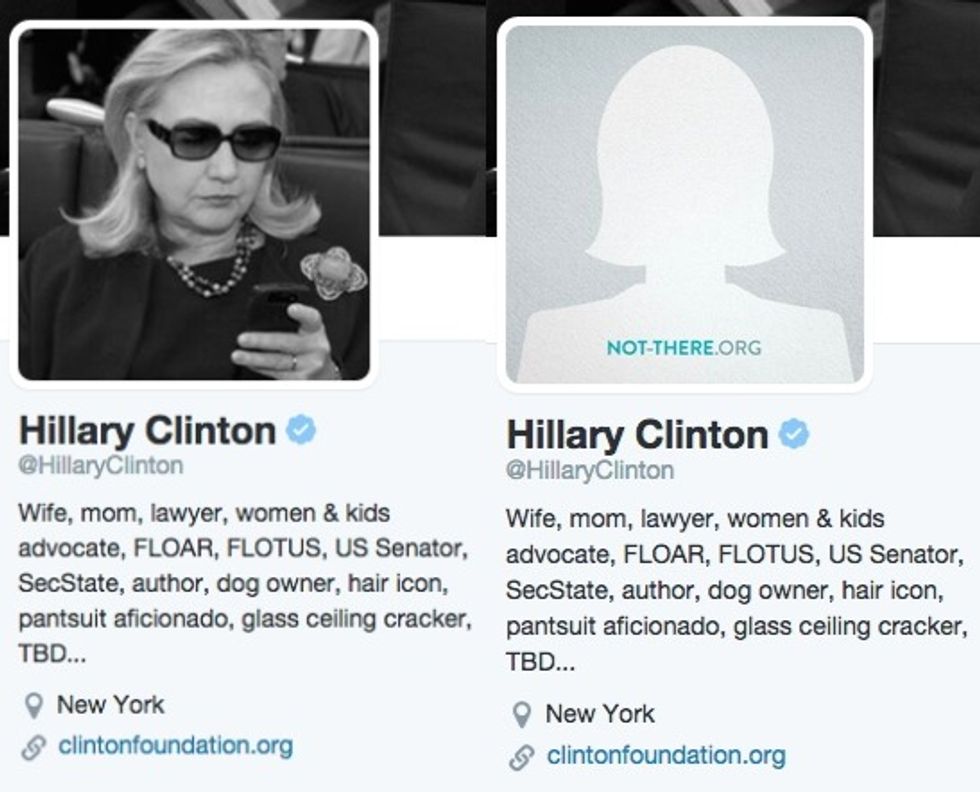 The official explanation, the former secretary of state and first lady tweeted, was that she wanted to "raise awareness on how far we've come in reaching equal rights for women & girls worldwide" with the Clinton Foundation's "Not There" avatar — Sunday is International Women's Day.