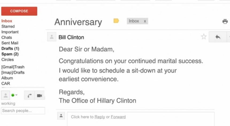 "Clinton" also promised to release her personal emails in the spirit of transparency — including her steamy, "mature" emails with her formerly philandering husband.