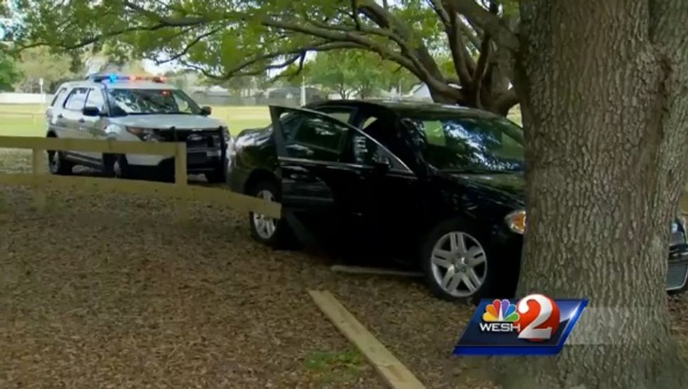 According to the news station, deputies saw the suspects running when they arrived at the home. The pair were apprehended after crashing their getaway car into a fence.