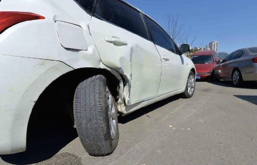 The photos, posted Wednesday, stated, "a BMW car hit four parked cars and caused varying degrees of damage." (Translation via Google Translate.)