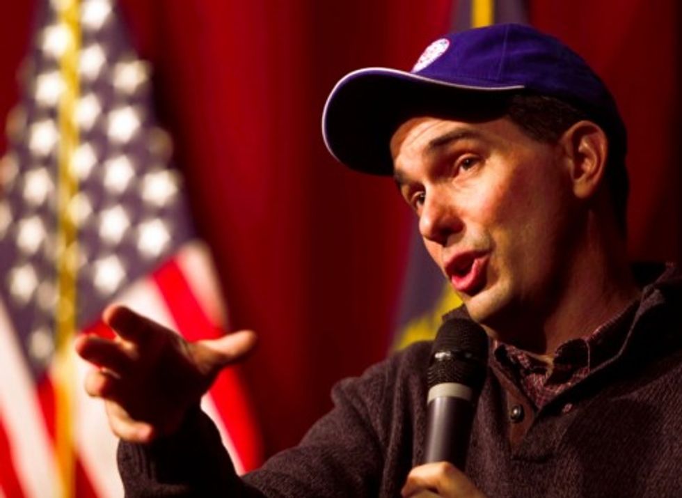 Wisconsin Gov. Scott Walker answers questions at a training workshop for the state Republican Party in the auditorium at Concord High School Saturday, March 14, 2015, in Concord, N.H. (Image source: AP/Jim Cole)
