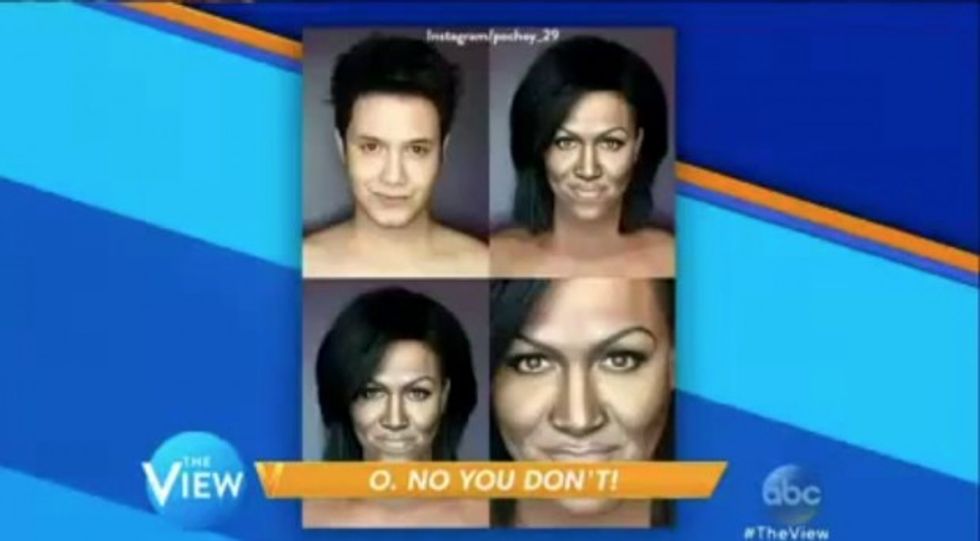 The host, Rodner Figueroa, lost his job and apologized to the first lady, saying his joke was aimed at the makeup artist behind the look, not her. He has since been accused of racism.