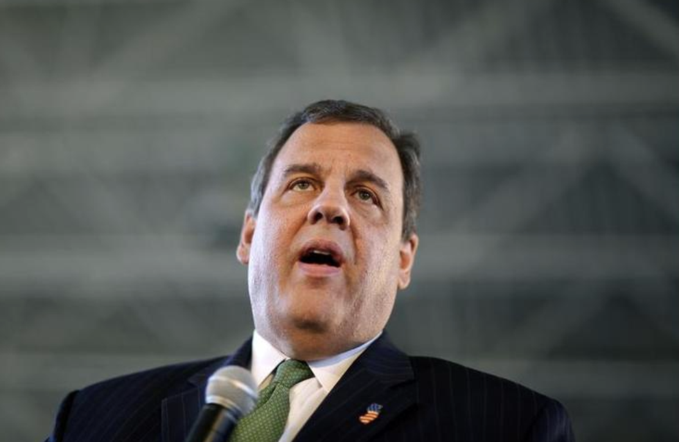 New Jersey Gov. Chris Christie addresses a gathering at a town hall meeting Tuesday, March 17, 2015, in Freehold, N.J. (Photo/Mel Evans)