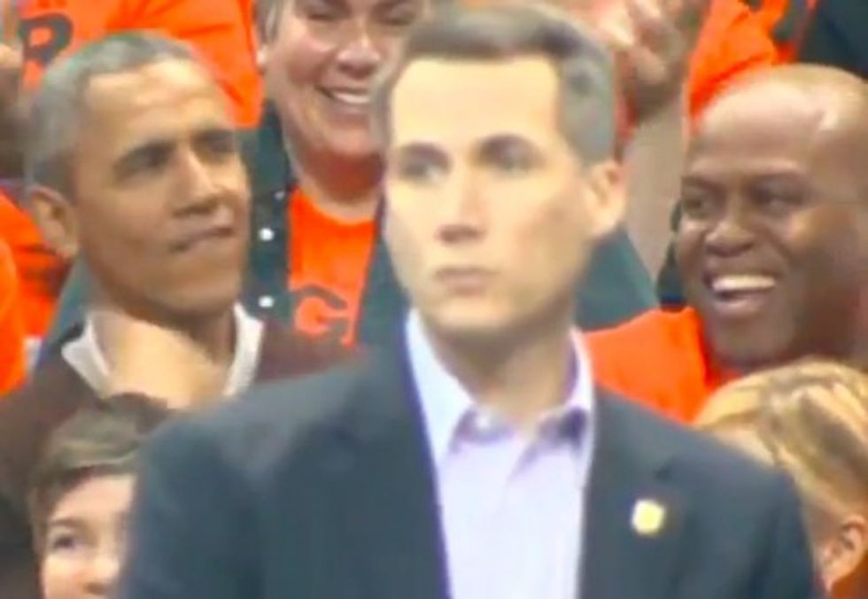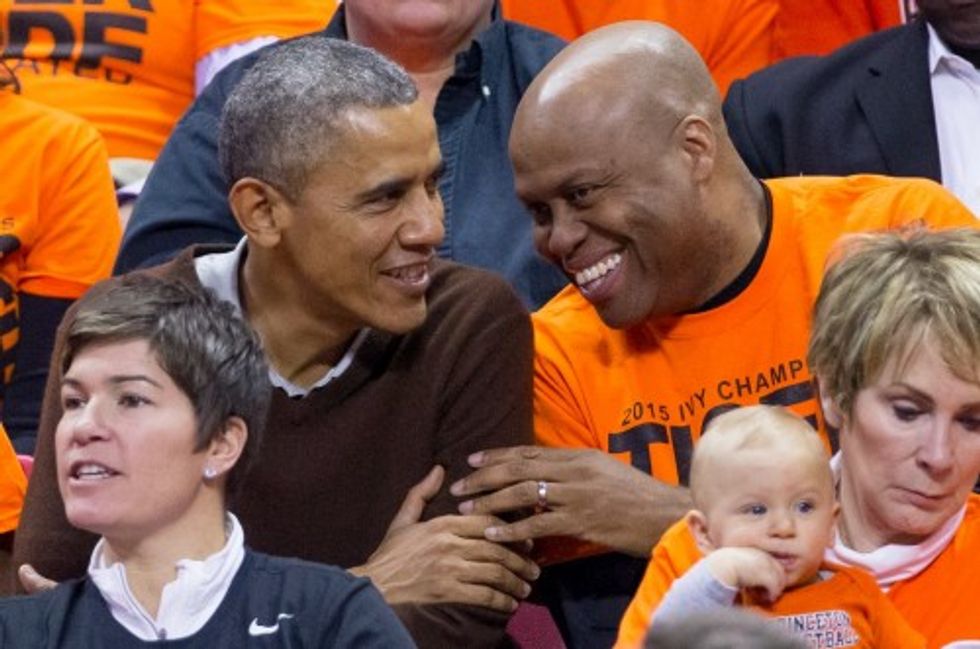 — Zeke Miller (@ZekeJMiller) March 21, 2015AND the Princeton student section just got a "4 MORE YEARS!!! 4 MORE YEARS!!!" chant going for Obama. Not legal but...he enjoyed
