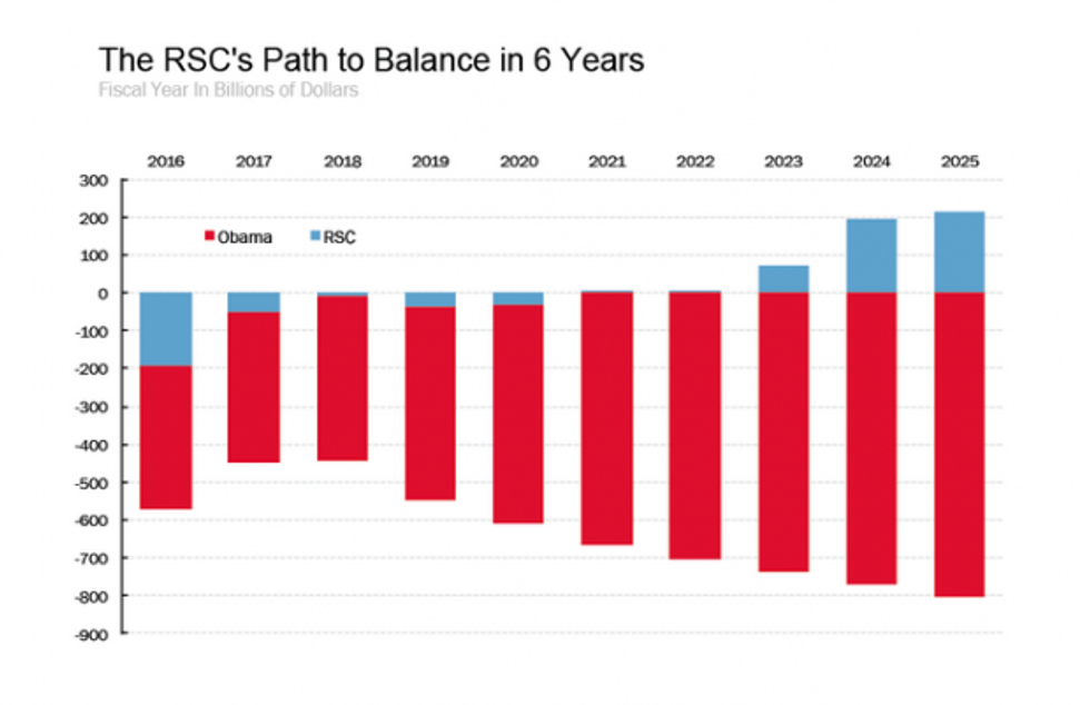 While Democrats can be expected to criticize the RSC budget for imposing austerity and requiring massive cuts, the RSC budget actually calls for more spending over the next decade. It would have the government spend $3.65 trillion in 2016, and spend $4.82 trillion by 2025.