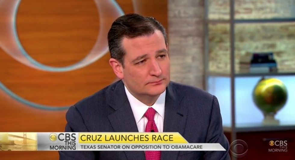 Appearing on “CBS This Morning” Tuesday, Republican presidential candidate Sen. Ted Cruz, of Texas, was asked by CBS News correspondent Vladimir Duthiers if he would “take” away the health care of 16 millions of Americans insured under Obamacare if elected president. He seemingly came prepared to field such a question.